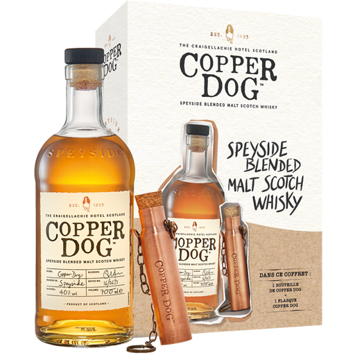 Copper Dog Blended Malt est un whisky écossais chargé d’Histoire. Fruit de l’assemblage de malts provenant de 8 distilleries du Speyside, Copper Do...
